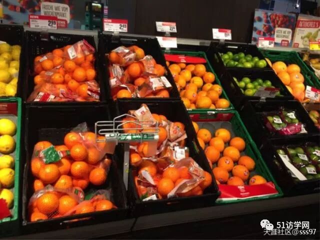 水果基本都是当地产的,种类比较少,味道也不是太好,苹果1.99欧一公斤,橙子2.49欧一公斤。