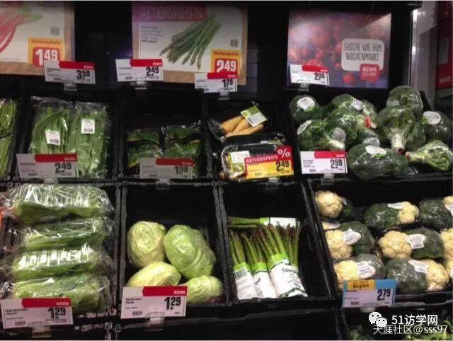 蔬菜价格比较贵,且种类少,经常需要逛几家超市才能买到一些能吃的素材;比如芹菜1.19欧一颗;青椒4.99欧一公斤;圆白菜1.99欧一公斤;菜花2.59欧一颗;扁豆角3.59欧一斤。