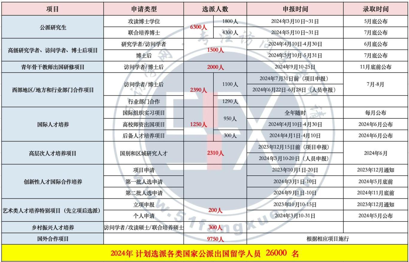 既然目标是CSC公派访学,与其含含糊糊,还不如快速行动起来花点时间研究下CSC公派项目。目标再次锁定2024年CSC公派留学项目,公派项目清单(见下表)