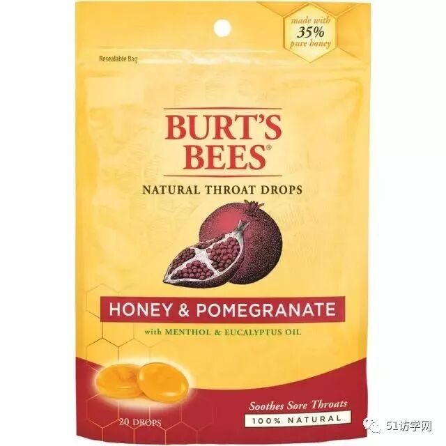 Burt’s Bees Natural Throat Drops Honey & Pomegranate :缓解咽喉干痛等症状,Target有售。