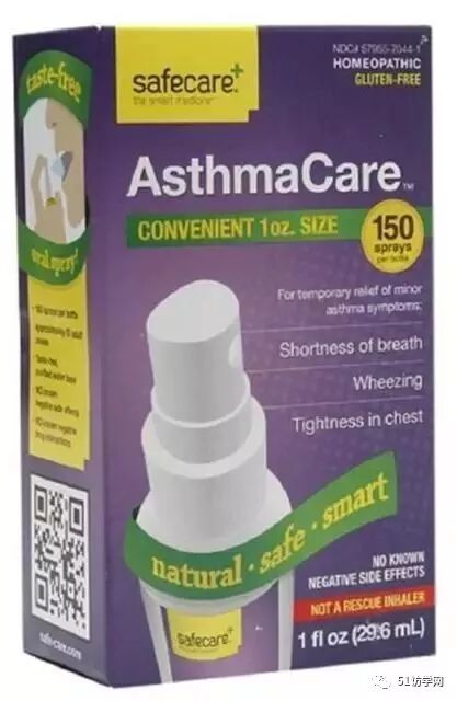 Safecare AsthmaCare:喷剂,用于暂时缓解轻微的哮喘症状。