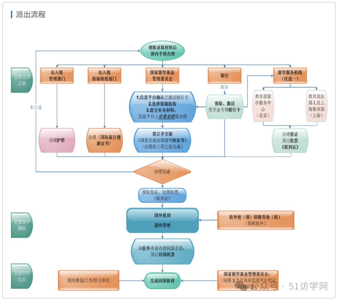 👉公布录取结果➡外语水平合格➡办理派出手续➡国外报到