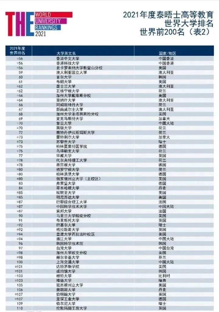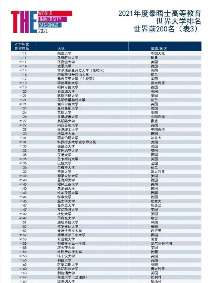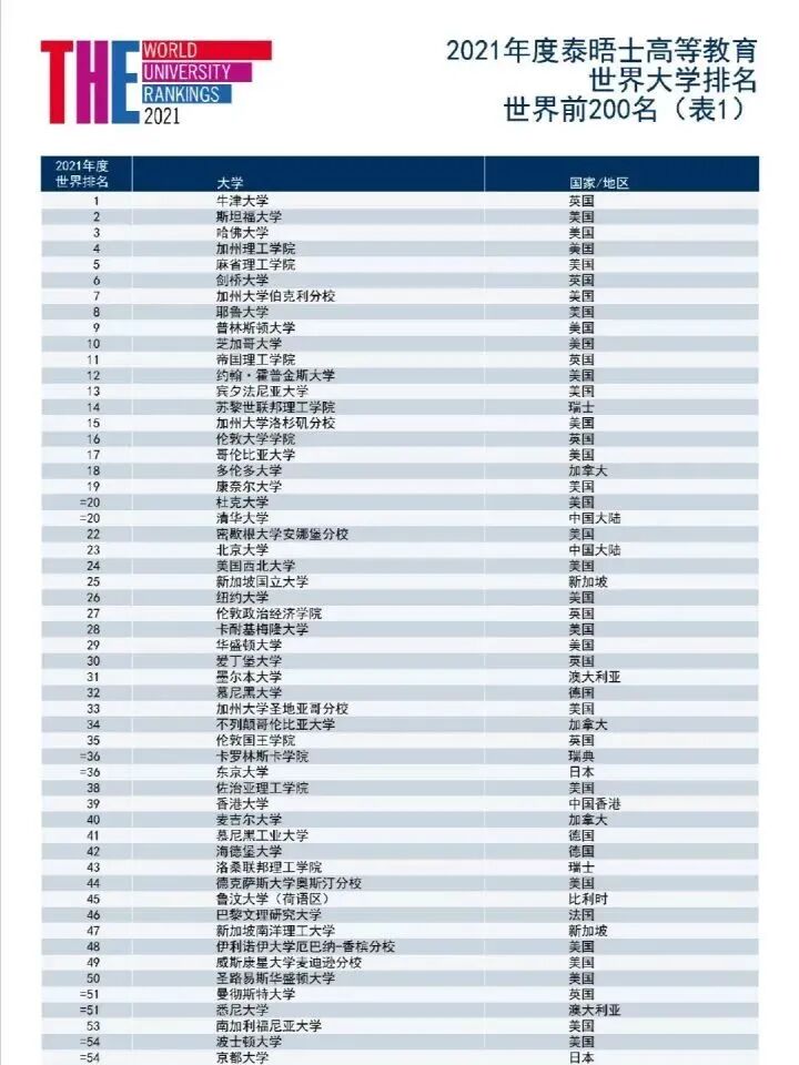 最新2021年泰晤士世界大学排名(Times Higher Education World)已经正式发布了!