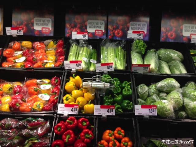 蔬菜价格比较贵,且种类少,经常需要逛几家超市才能买到一些能吃的素材;比如芹菜1.19欧一颗;青椒4.99欧一公斤;圆白菜1.99欧一公斤;菜花2.59欧一颗;扁豆角3.59欧一斤。