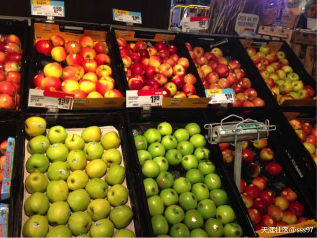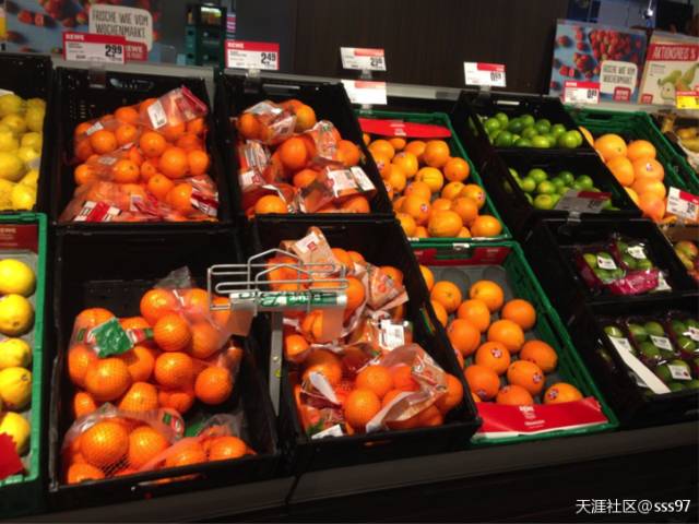 水果基本都是当地产的,种类比较少,味道也不是太好,苹果1.99欧一公斤,橙子2.49欧一公斤。