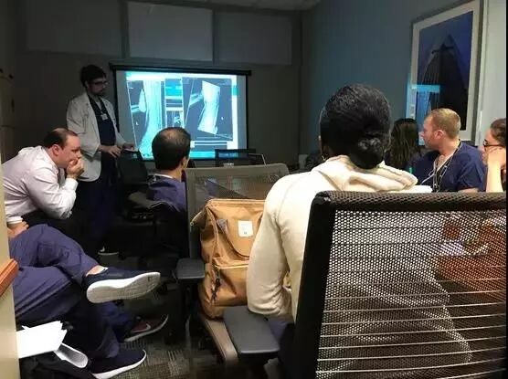 小讲课跟我们医院组织讲课相似,从疾病的定义、解剖、生理、病理、诊断、鉴别诊断、治疗。但是这里亮点是讲纯理论少,讲临床应用多,同时不时穿插提问,住院医师也很认真做笔记。